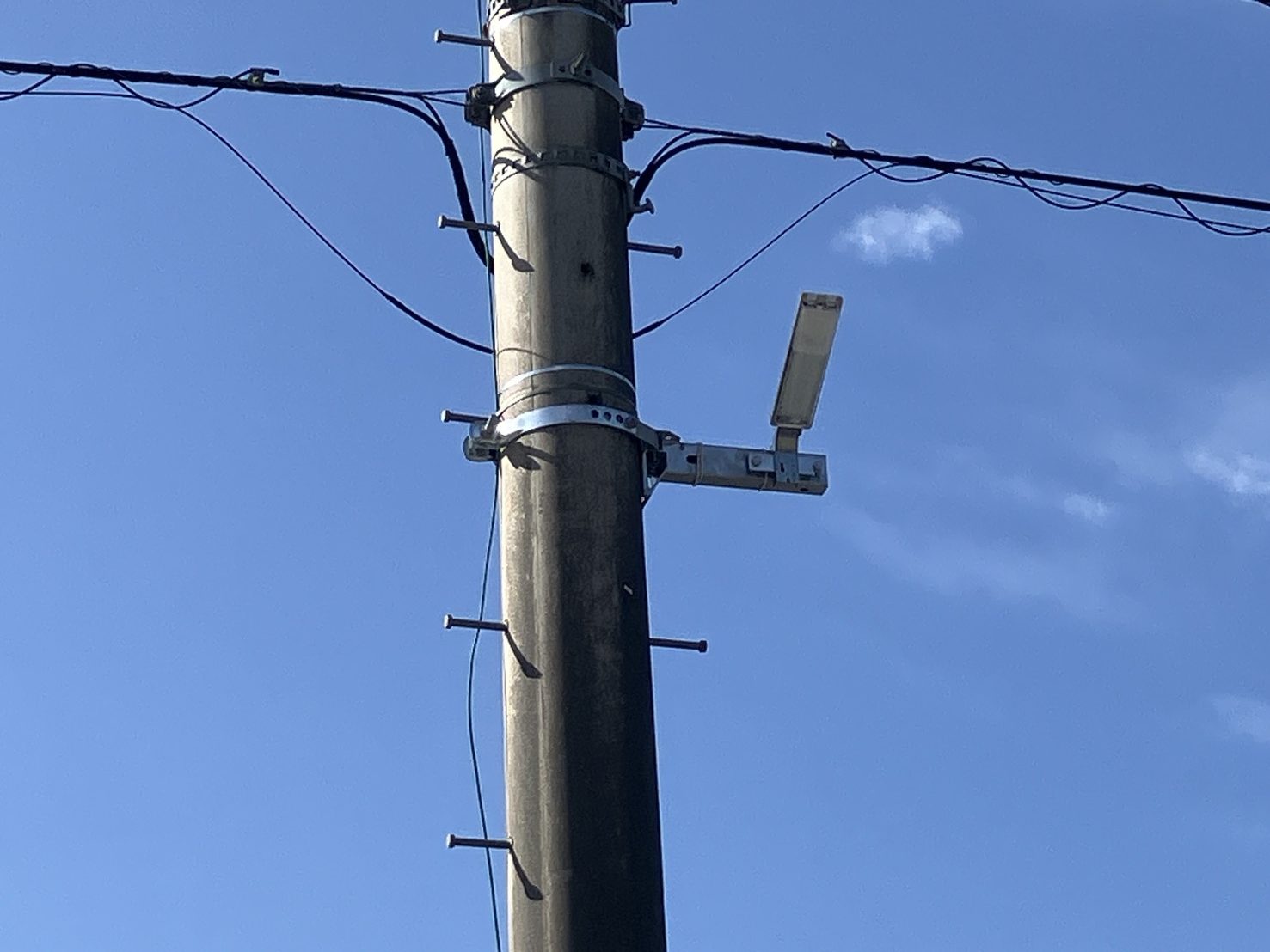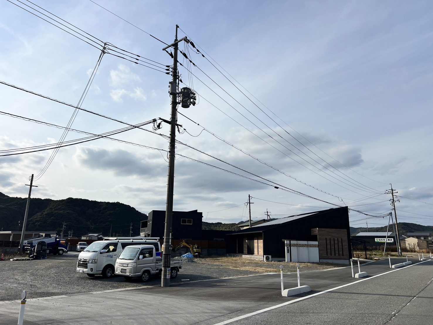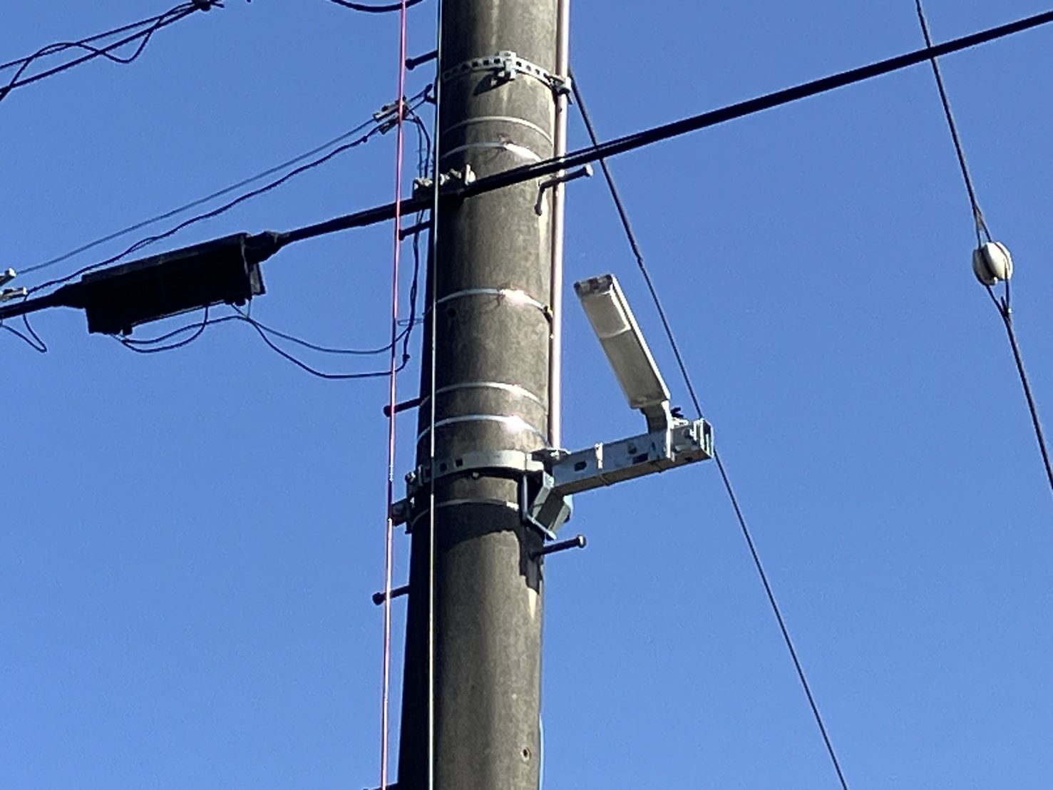 電話線や電線が入り組む場所ですが、事前にしっかりと計測を行って取り付けました。