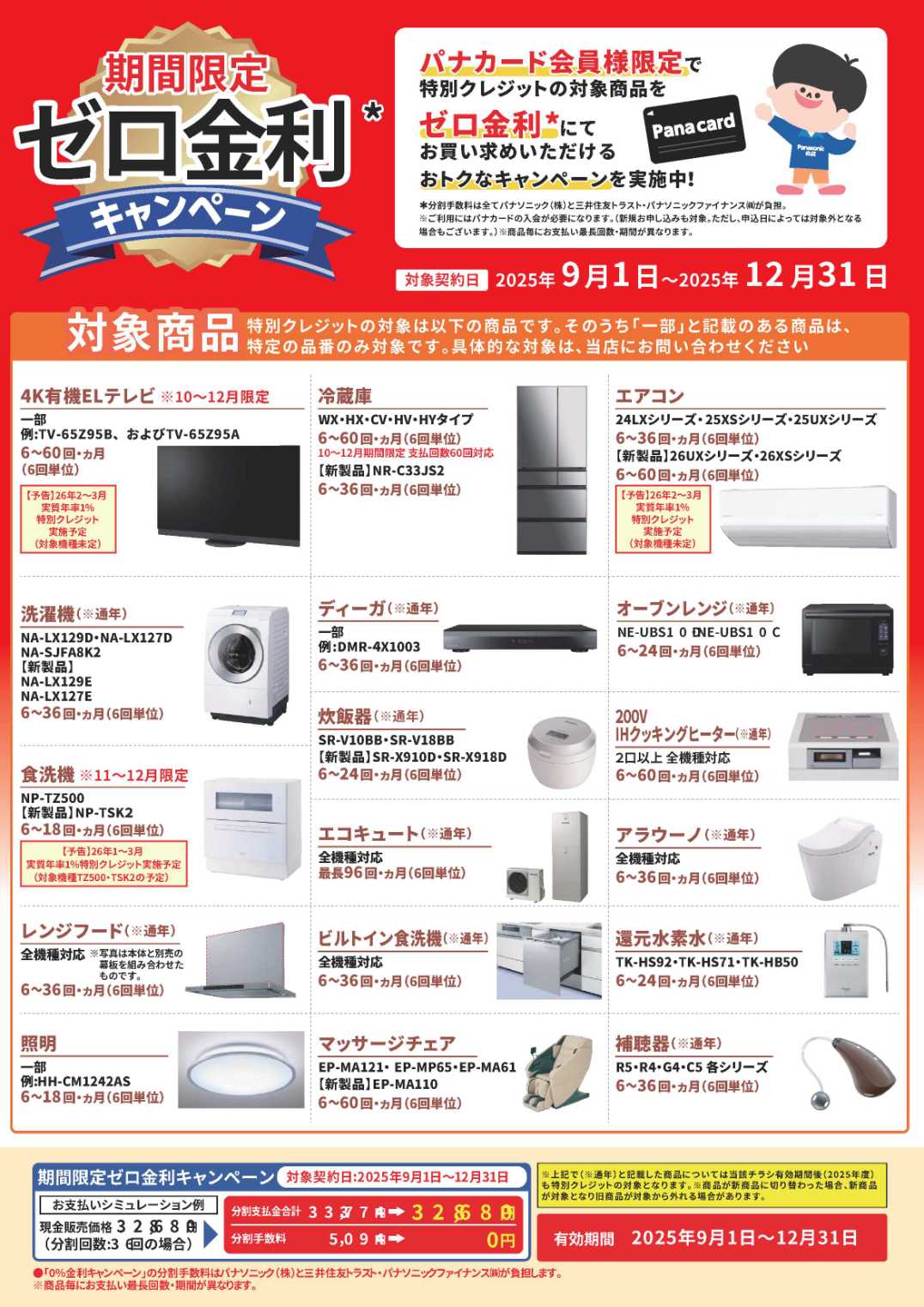 特別クレジットの対象商品を、ゼロ金利でお買い求めいただけるおトクなキャンペーンを実施中です!